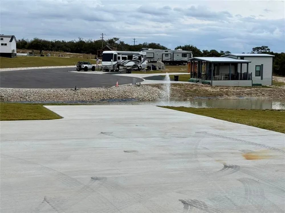 Lot 86- A Premium RV Lot, the LARGEST LOT on the RESORT!! This beautiful site allows for Sunrise Views overlooking the Resort Pond and fountain. Just a short walk to the Sunrise POOL, clubhouse, and dog park where you can relax after a long day of Whiskey & Wine Tours and tons of Shopping in Downtown Federicksburg. Custom concrete pad with additional bumps outs for extra seating, covered seating area, and room for an additional parking spot on the pad. Full hookups (water, sewer, power) 50/30/20 amp.